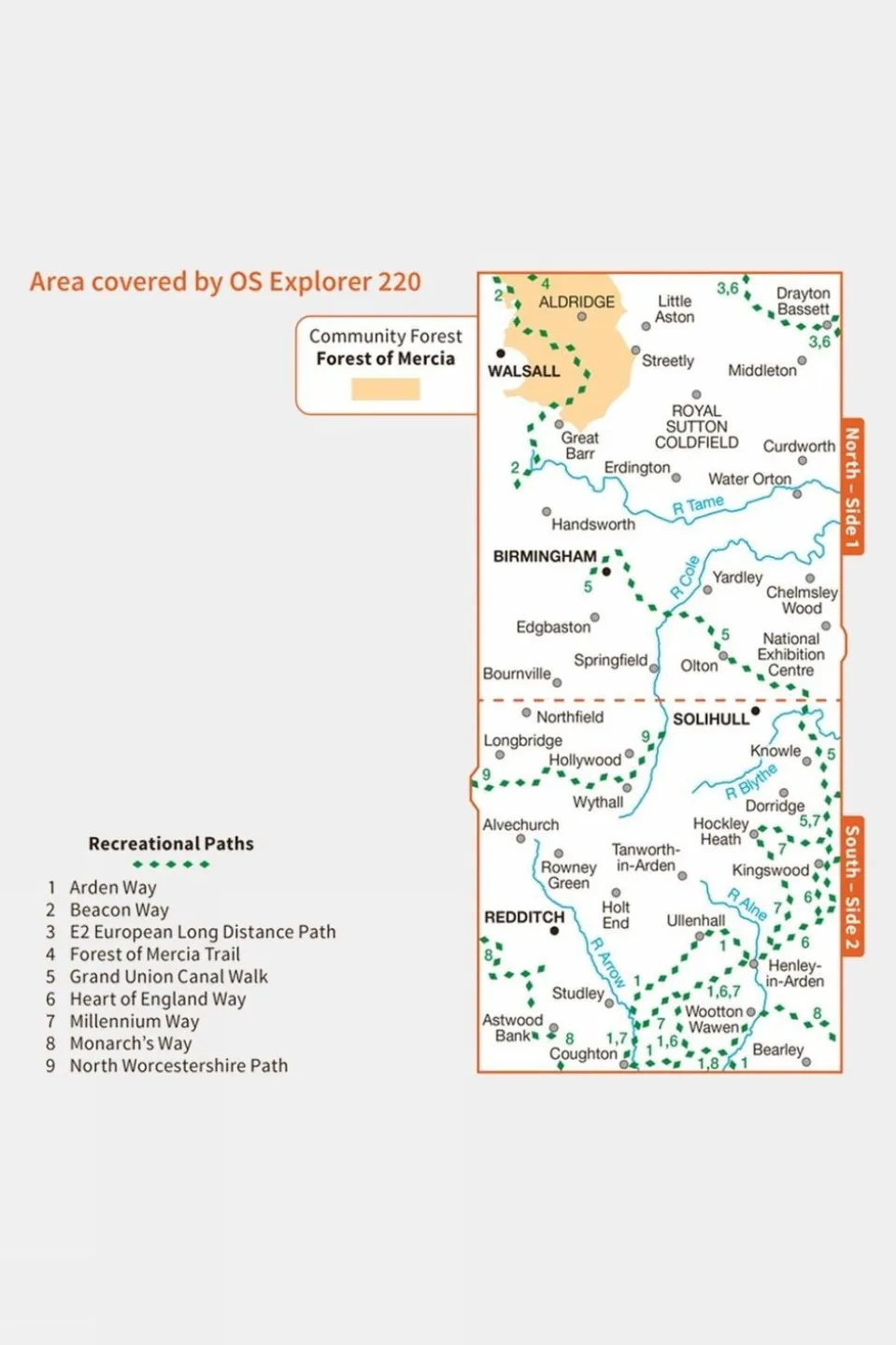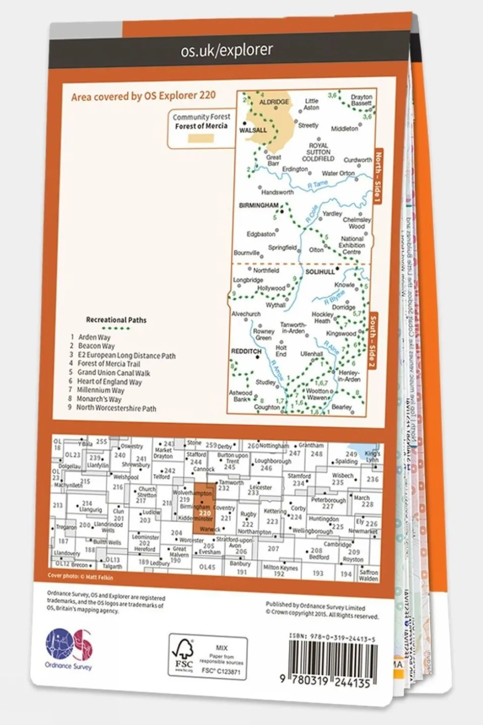 With its exceptional level of detail and clarity, Ordnance Survey’s Explorer Map 220 Birmingham map is a favourite of walkers, climbers, mountain bikers, outdoor professionals and anyone else who needs to know exactly where they are. The 1:25,000 scale allows plenty of detail, and the squares of the National Grid allow every bit of Great Britain to be given its own unique reference number.