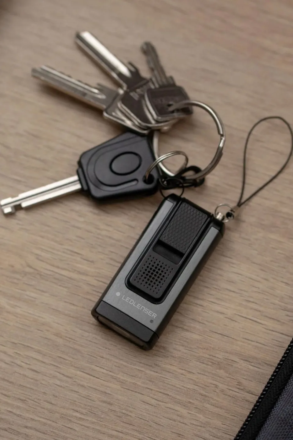 Always within reach, a carabiner lets you easily attach to keyring, backpack or purse. A transport lock protects against unintentional switching on and thecharge level indicator shows you how much battery life is available.