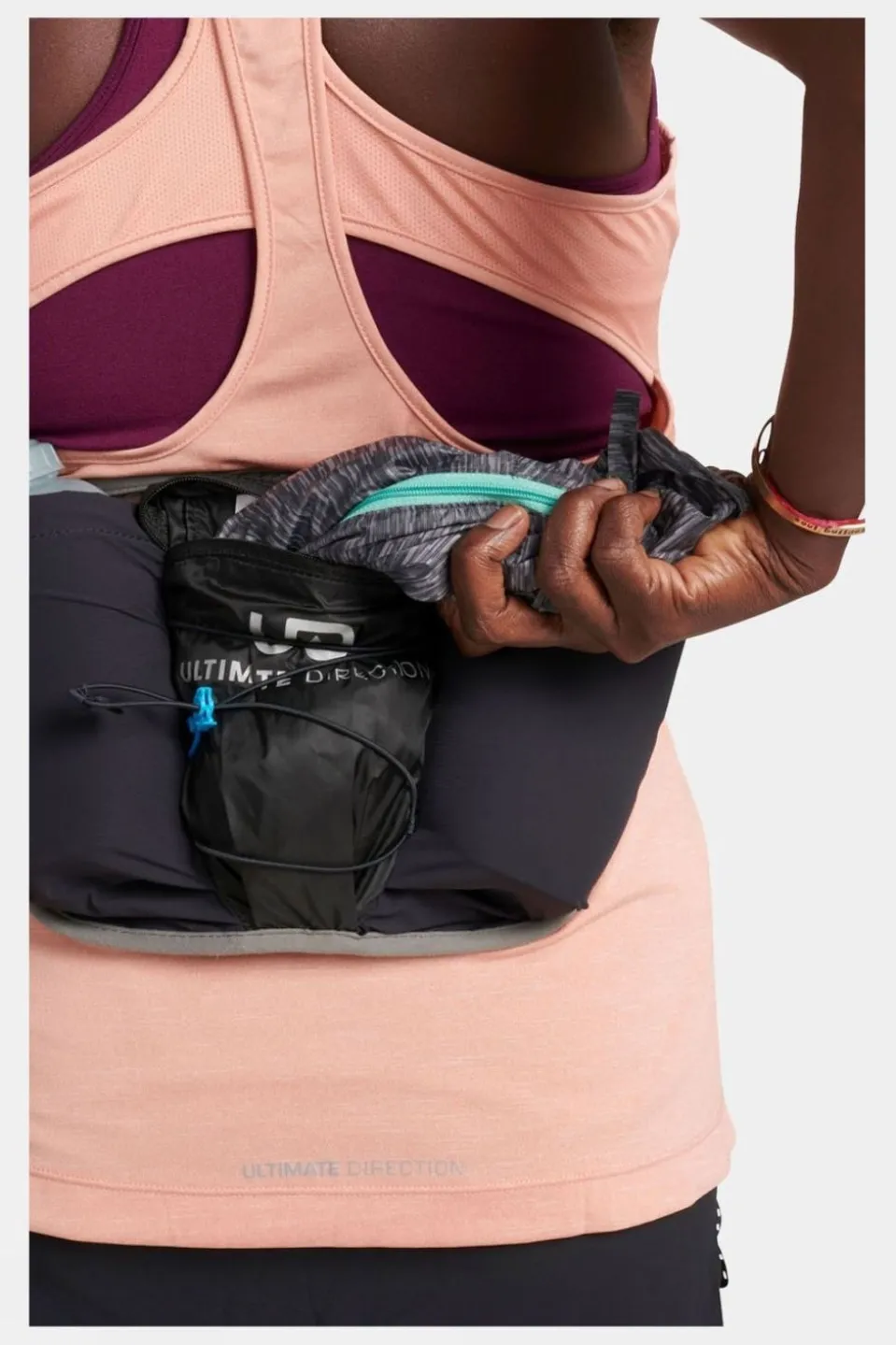 Versatile and adaptable, the Ultra Belt accepts the Ultimate Direction Adventure Pocket for extra storage, making it the ultimate waist-belt alternative to a traditional race vest.